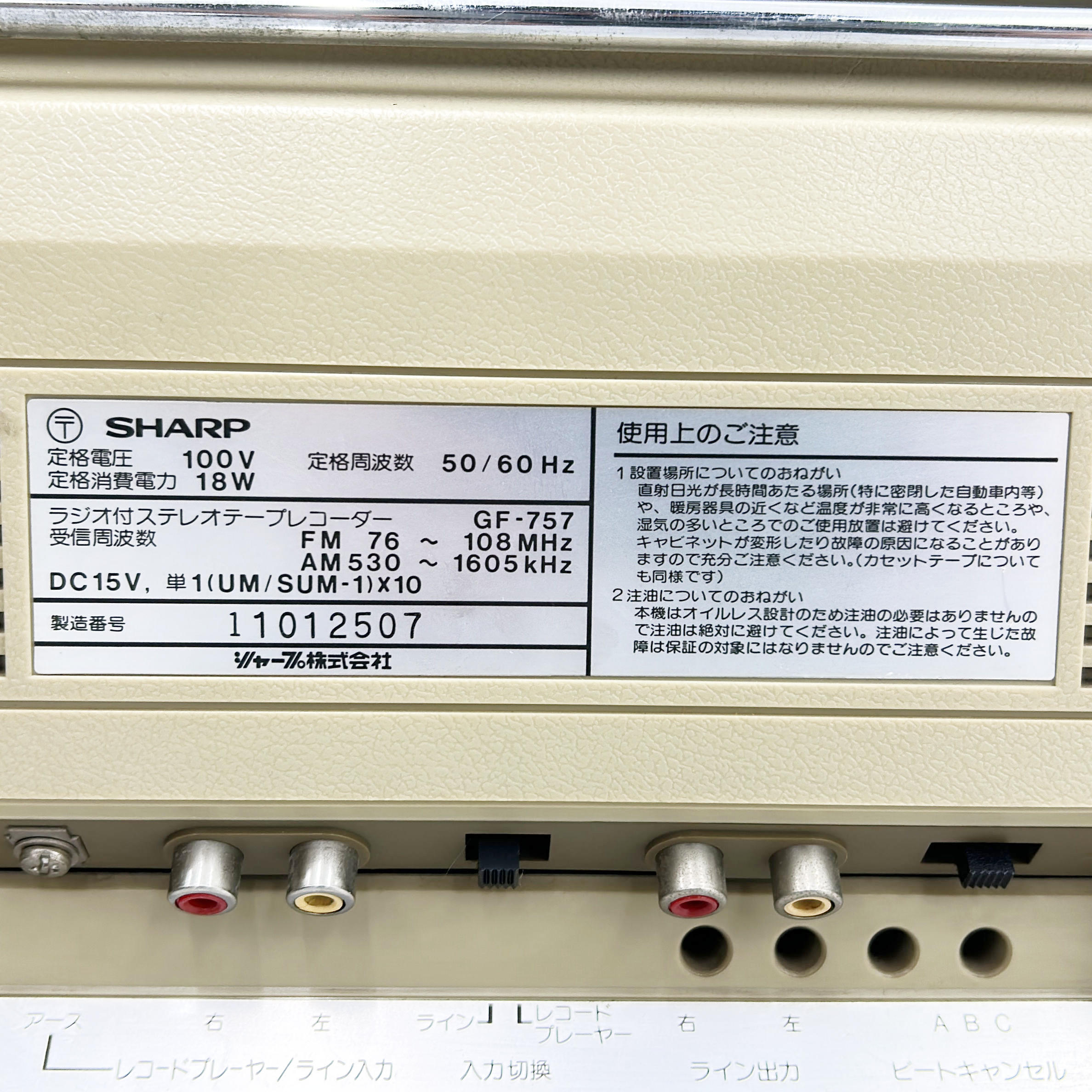 - メーカー/型番:SHARP GF-757